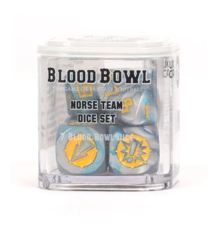 Rampage to victory with this Norse Team Dice Set, decorated with icy blue swirls and gold-coloured ink. Each six-sided dice in this set features the dragonship logo of the Norse Team on the 6 face, so you can pour one out for your beer-loving teammates.