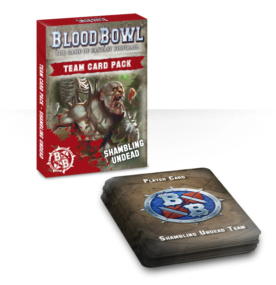 A 49-card deck of Blood Bowl reference cards for Shambling Undead teams such as the Champions of Death. In addition to a number of player datacards for each Shambling Undead player and their available Star Players, there is a selection of blank player cards that can be used to create or keep track of your own players for your team.