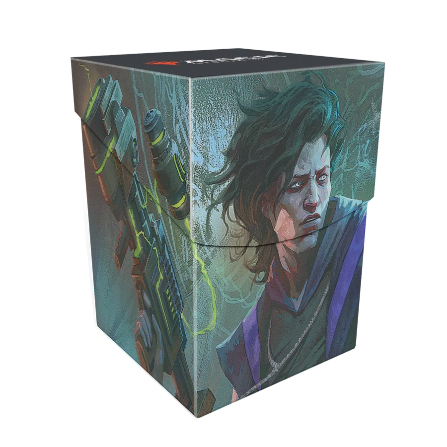 The 100+ Deck Box® card storage container features vibrant, full-color artwork from Magic: The Gathering and includes one deck divider. Made with archival-safe, non-PVC, rigid polypropylene materials, you can store up to 100 double-sleeved cards with confidence. The self-locking lid keeps your cards securely stored when not in use, while also offering easy access. Sized for standard-size trading cards.