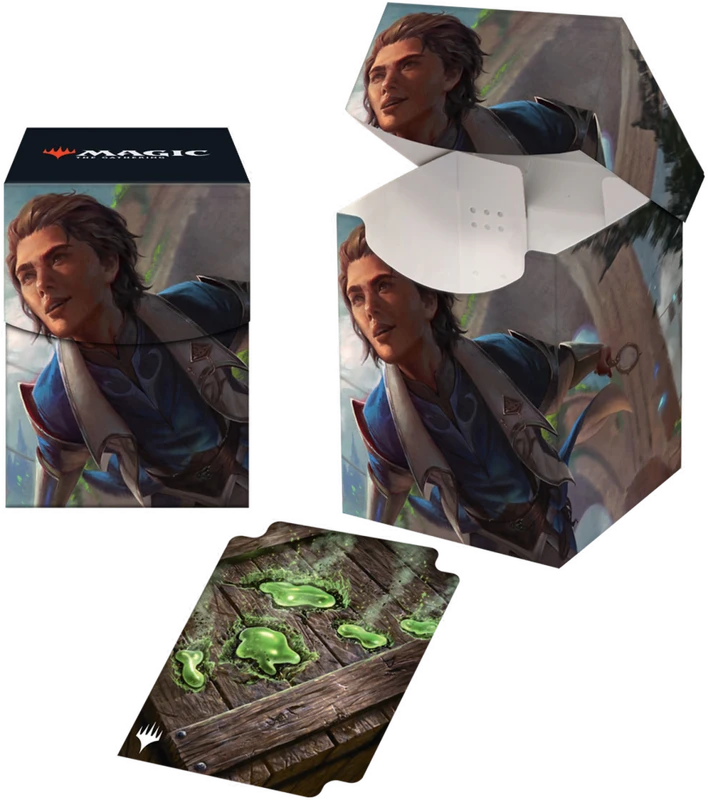100+ Deck Boxes for Magic: The Gathering feature a vibrant, full-color artwork and includes a deck divider. Made with archival-safe, non-PVC, rigid polypropylene materials, you can store up to 100 double-sleeved cards with confidence. The self-locking lid keeps your cards securely stored when not in use, while also offering easy access. Sized for standard size trading cards.