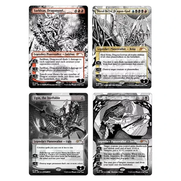 This product contains four Planeswalkers in the Borderless Manga special treatment.