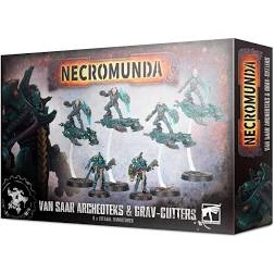 Expand your Van Saar gang with these six fighters. The Archeoteks are Van Saar Champions that have access to the best technology that the clan can provide – one of these models comes equipped with a deadly rad beamer while the other has an esoteric spider-rig. The Neoteks each fly into action aboard a grav-cutter. They each carry a laspistol and an energy shield, and the kit comes with four different heads.