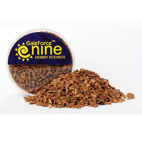 Basing Grits are used to represent all sorts of dirt, sand, rubble or debris. All Gale Force Nine basing grit is made from a porous organic material rather than sand or other minerals. This organic material absorbs glue and paint, insuring that everything stays where you want it. When using sand (or kitty litter or any other mineral), paint and glue tend to flake off over time.