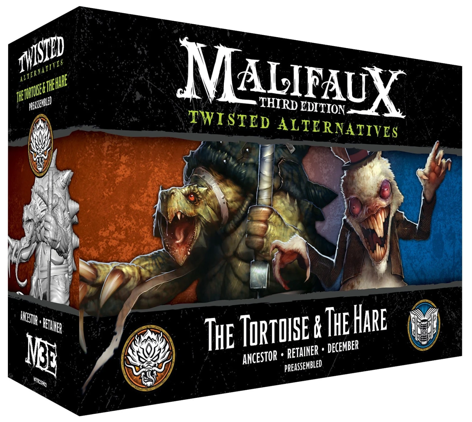 Tortoise and Hare, Winter and Spring. The battle between Genbu the Tortoise and the Pascha Hare is as old as time itself. Now, their battle spills out onto the tabletop with these two alternate sculpts! This story box contains Genbu the Tortoise (alternate Izamu) and the Pascha Hare (alternate Blessed of December), three Malifaux scenarios, and an adventure for Through the Breach.