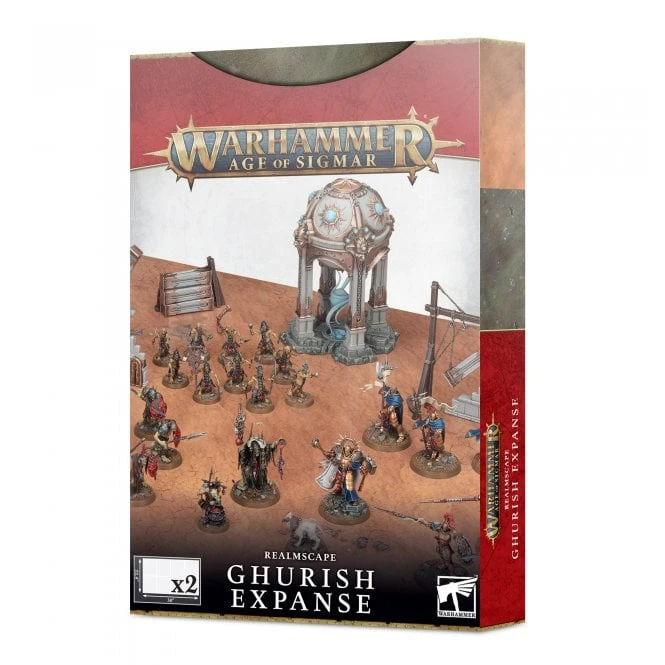 Begin your adventures upon the battlefields of Ghur with these double-sided, fold-out boards, featuring murky swamps on one side and dry wastelands on the other. When placed together, these boards make a battlefield measuring 44.8″ x 30″, perfect for 1,000-point games of Warhammer Age of Sigmar, and they are the ideal foundation for a wide range of Citadel scenery products. Due to the easily expandable rules available in the Warhammer Age of Sigmar Core Book, two or more sets of these boards can produce battlefields suitable for games of 2,000 points or more.